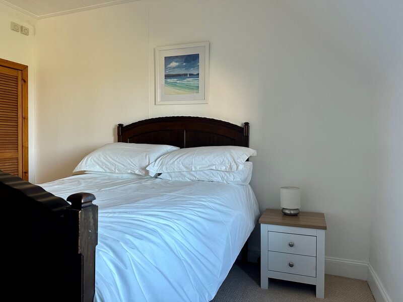 Double Bedroom – Sea views, double bed, chest of drawers and hanging rail.