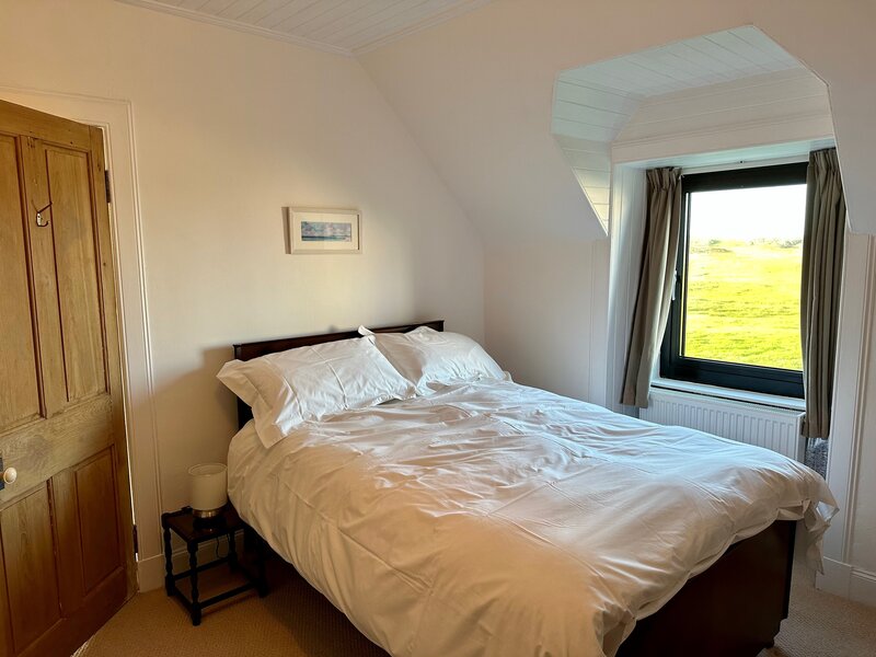 The staircase window allows sea views across Gott Bay and provides a bright upper landing leading to three further bedrooms.