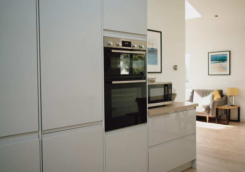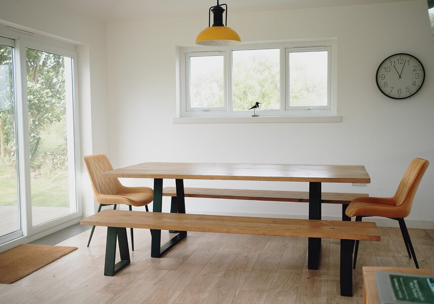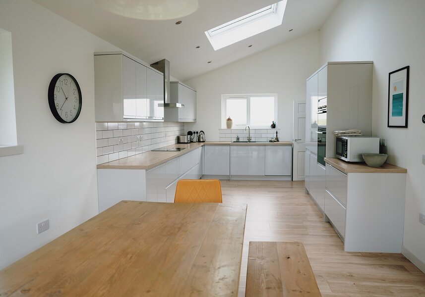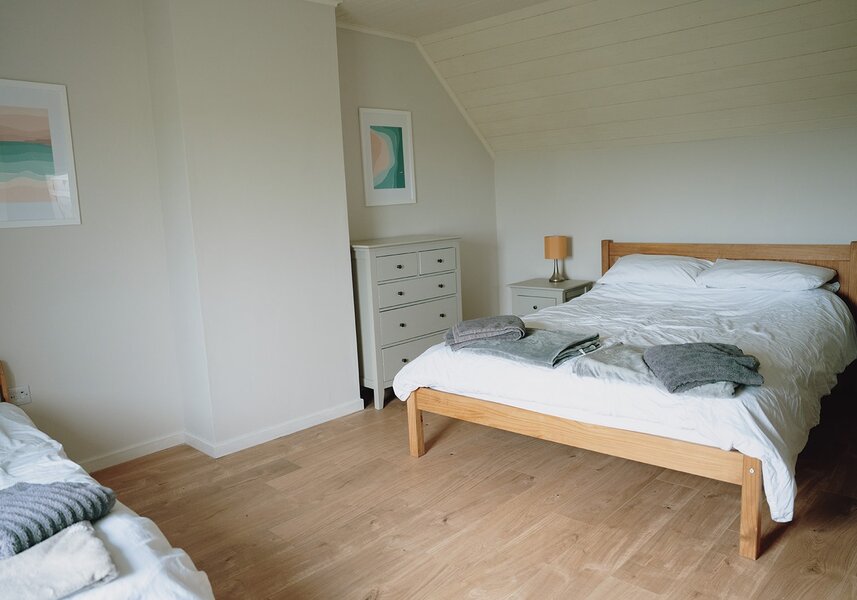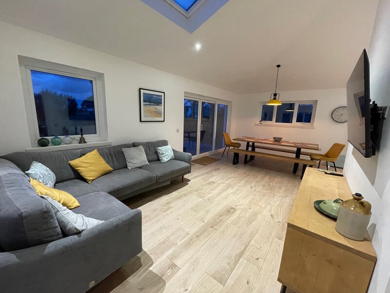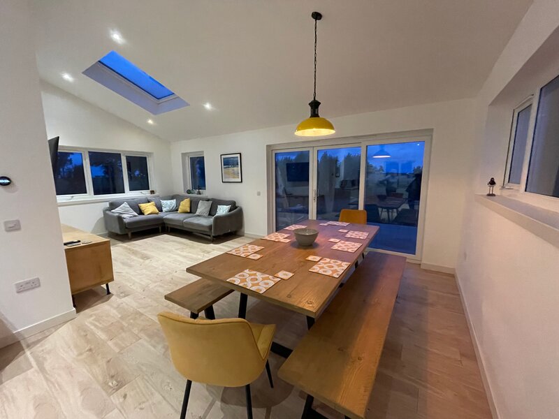 The Haven offers a modern, spacious open plan living, dining, kitchen area, a cosy lounge with a wood burning stove, 4 comfortable bedrooms (3 kingsize beds, 1 single and a bunkbed), 2 bathrooms and a large garden with decking and picnic table